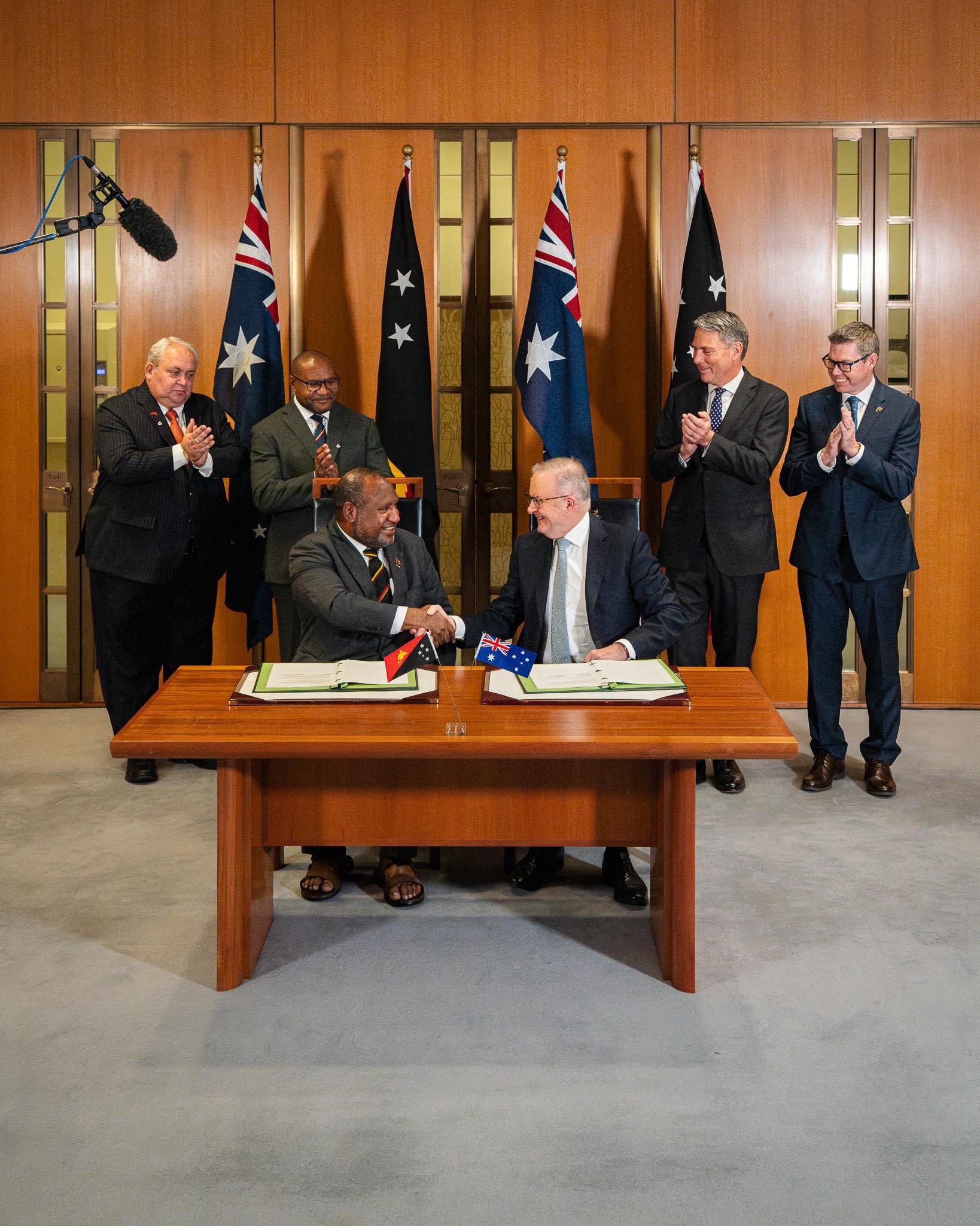 Vedoucí představitelé Austrálie a Papuy-Nové Guineje podepsali dnes významnou bilaterální obrannou smlouvu, která hovoří o společné obraně před vnějšími vlivy a napadení a společném postupu armády v takovém případě. „Obě země v případě válečného konfliktu budou jednat, tak jako kdyby šlo o jednotné, napadené území, čímž budeme čelit společně stejnému nebezpečí,“ uvedl na tiskové konferenci australský premiér Anthony Albanese.