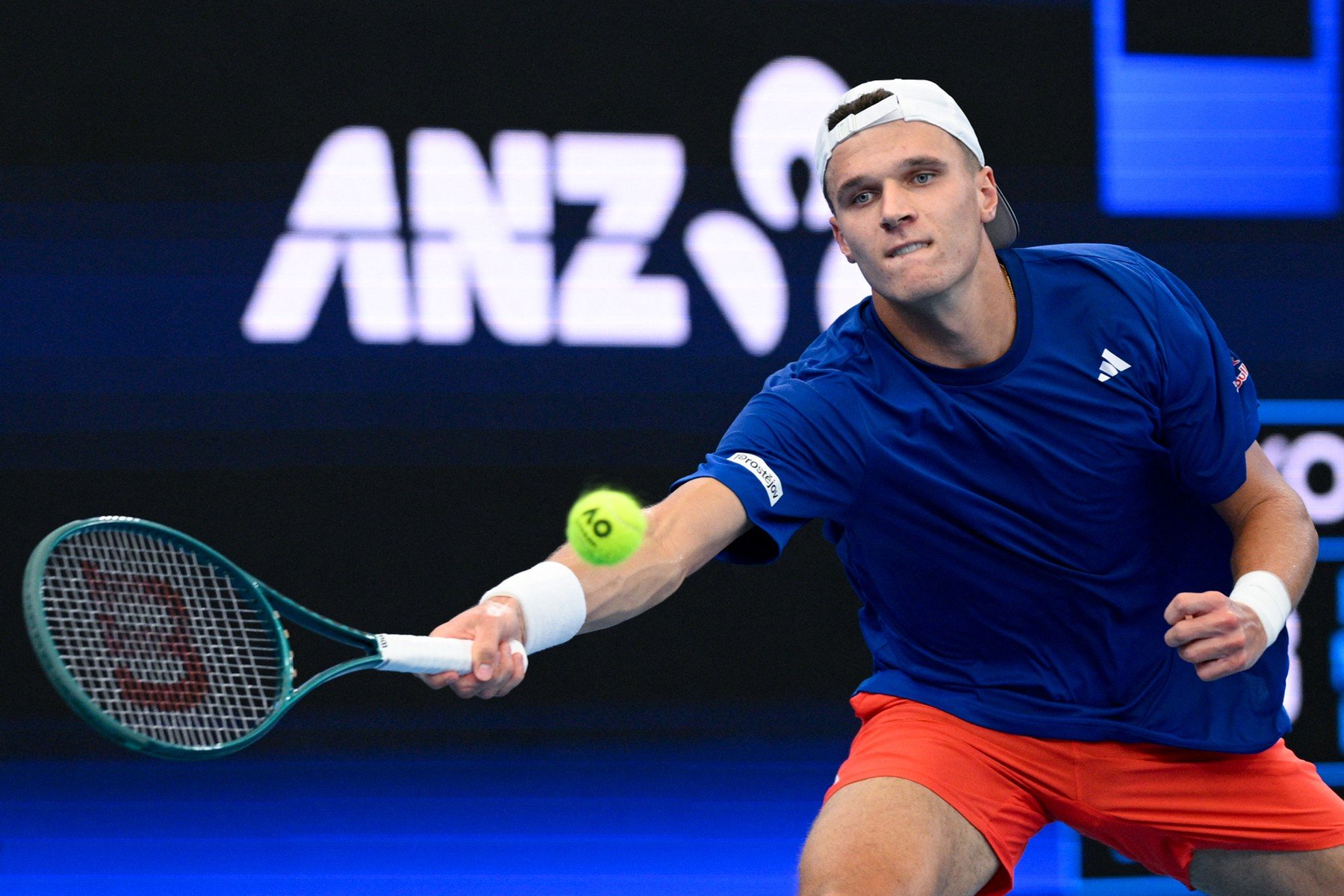 Bergs je v Austrálii při chuti a po Augeru-Aliassimem (světové pětce) si vyšlápl i na českého mladíka. V prvním setu přišel brzy o servis a Belgičan měl ve výměnách výrazně navrch. Českému tenistovi dovolil získat jen dvě hry a rychle se ujal vedení. Druhou sadu rozhodoval až tiebreak, ve kterém byl přesnější Bergs a získal pro Belgii první bod.