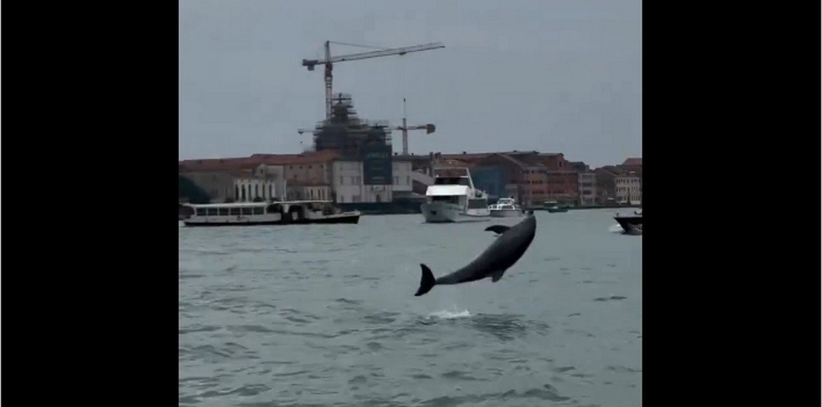 An unusual happy dolphin in the Venice lagoon! pic.twitter.com/5E6SafFJLC