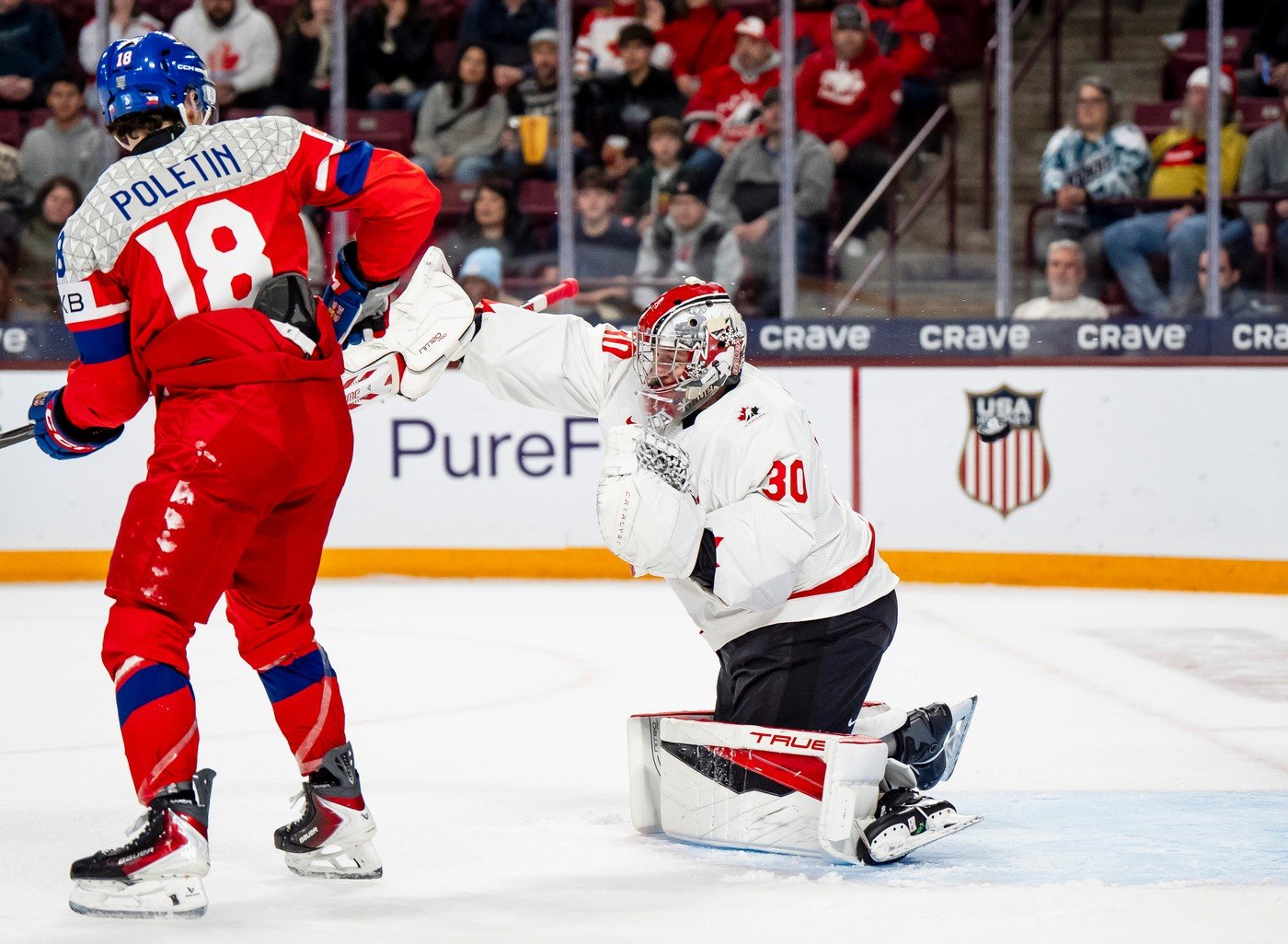 Branky a nahrávky: 18. Poletín (Benák, Pšenička), 25. Čihař (Benák, Man), 33. Sikora (Čihař, Nestrašil), 46. Poletín (Sikora), 56. Galvas (Nestrašil, Čihař) – 14. Martin (McKenna, Hage), 18. Hage (Martin, Danford), 38. Parekh (Cameron Reid, Desnoyers), 44. Parekh (McKenna, Reschny), 47. Iginla (Misa, MacKenzie), 50. MacKenzie (Hage), 59. Martone (Beaudoin, MacKenzie)