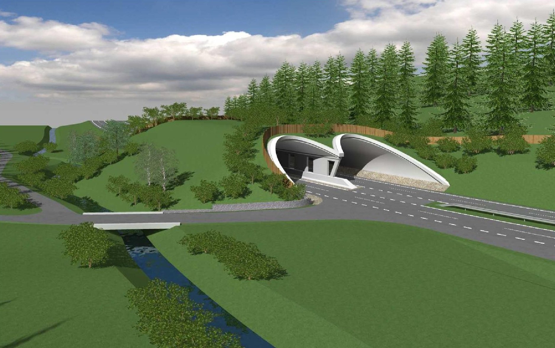 Zvířecí nadchod vzniká v trase migračního koridoru pro velké savce přes Jablunkovskou brázdu. Začlení se do zvlněného terénu, součástí budou bariéry proti oslnění a hluku. Stavba vyjde na 144,6 milionu a hotová bude do roku 2028.