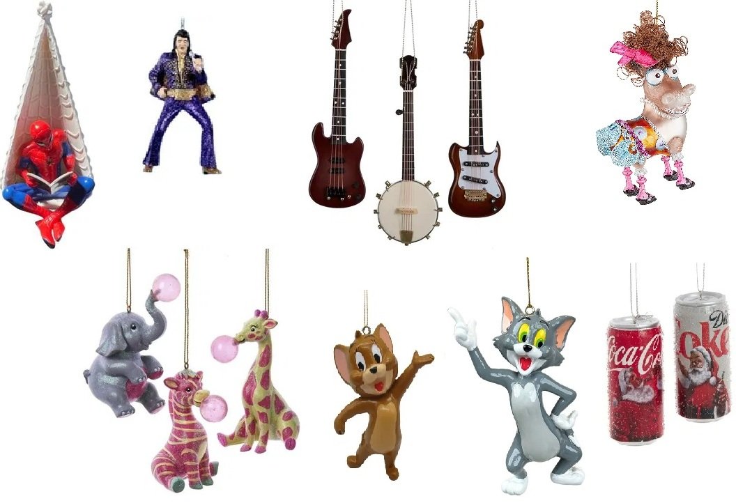 Na stromek lze zavěsit také hudební hvězdu Elvise Presleyho, Toma a Jerryho nebo Spidermana.