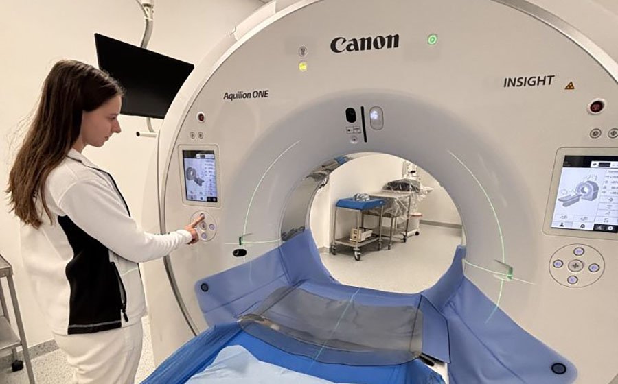 Nový přístroj sloužící umožňuje detailní zobrazení vnitřních orgánů, cév a tkání. Stál skoro 48 milionů korun. Jeho nejmodernější verze s podporou umělé inteligence umožňuje lékařům provádět tomografii rychleji, přesněji a s nižší radiací, což v praxi znamená i větší komfort a bezpečí pro pacienty.