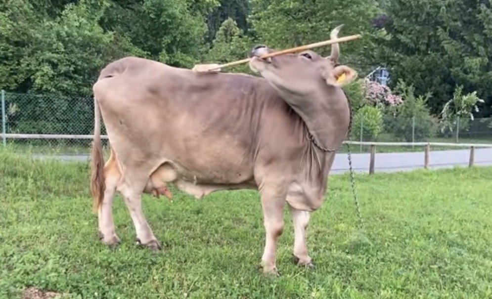 Začalo to klackem, kterým se kráva Veronika škrábala záda. Když jí její majitel přinesl koště, nestačil se divit. Veronika ho zvedla ze země a začala ho používat stejně jako klacek.