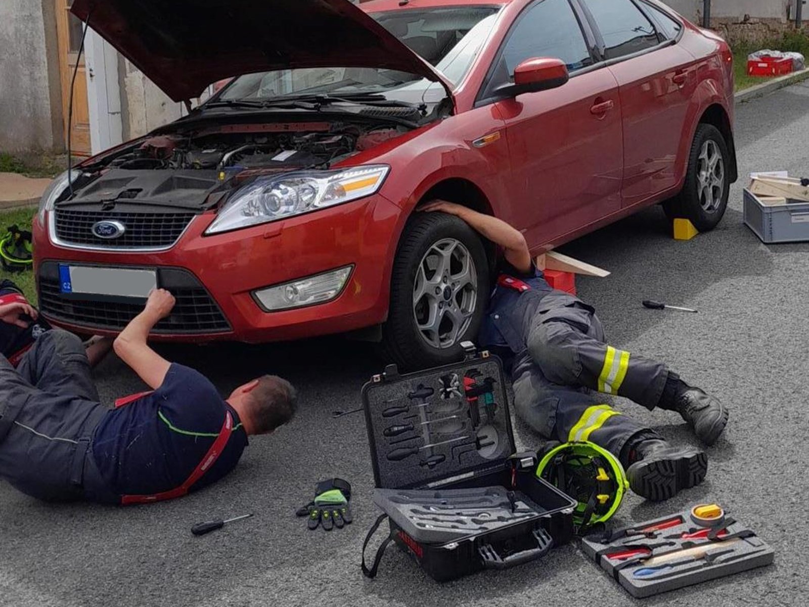 V Tuchlovicích zase hasiči zachránili králíka, který zalezl do motoru osobního auta, zasekl se a nemohl ven. Aby ho mohli vyndat, museli auto v přední části vyheverovat. Vystrašeného ušáka pak předali majiteli. Obdobnou záchranu si o týden později vyzkoušela i jednotka z Mělníka, která vyprošťovala kocoura zalezlého mezi nápravu a nádrž. Potřebný manipulační prostor pod autem si hasiči vytvořili pomocí zvedacích vaků.
