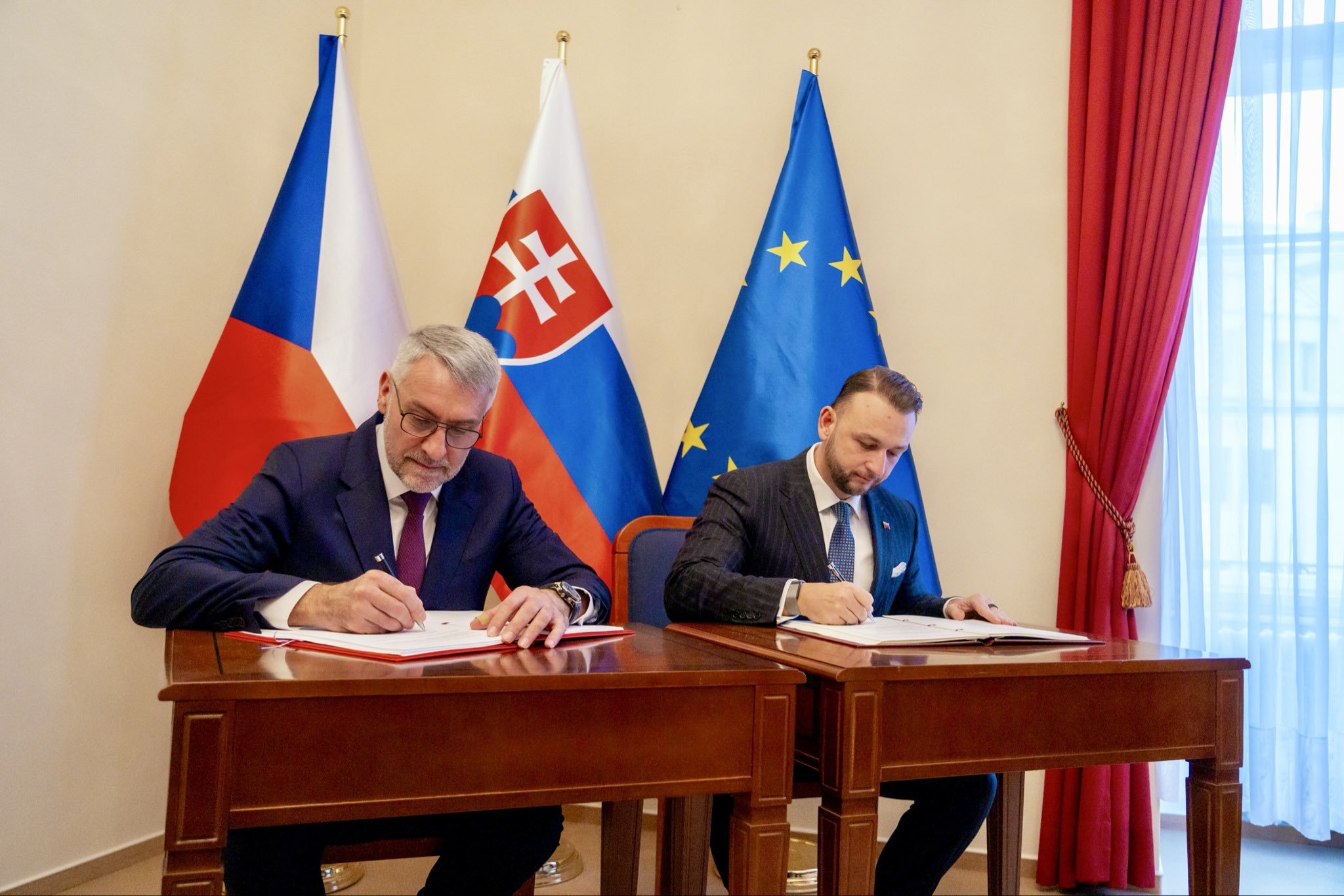 Moje první zahraniční cesta vedla na Slovensko. V Bratislavě jsme dnes s ministrem vnitra Matúšem Šutajem Eštokem podepsali novou smlouvu o policejní spolupráci, která posiluje výměnu informací, společné hlídky i bezpečnost na společných hranicích. Děkuji za vřelé přijetí a velmi… pic.twitter.com/hyvJrGMF7x