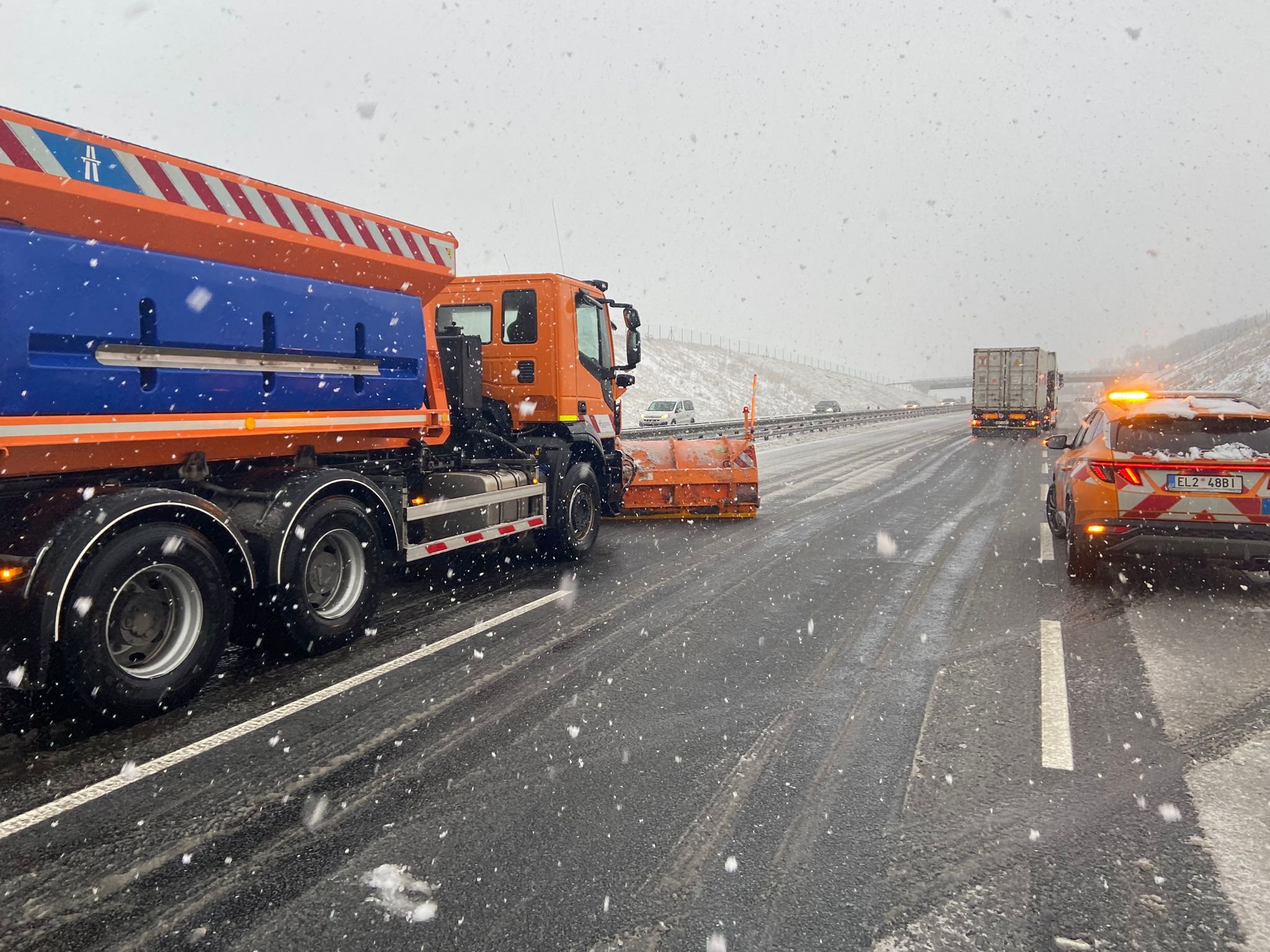 Na 21 střediscích správy a údržby dálnice je do připravených směn zařazených 672 řidičů a 150 dispečerů. Vedle 213 sypačů má ŘSD také 62 univerzálních vozidel s různým vybavením – při velkém sněžení se využijí třeba mohutné frézy schopné zvládnout i ty největší závěje. K nakládání soli do sypačů má ŘSD 52 nakladačů. V každém středisku je centrum pro výrobu a distribuci solanky, což je roztok vody a chloridu sodného nebo chloridu vápenatého. Během zimy se solanka vyrábí podle potřeby: za minulou zimu se spotřebovalo 6,1 milionu litrů solanky. Spotřeba soli byla v uplynulé zimě 17 000 tun.