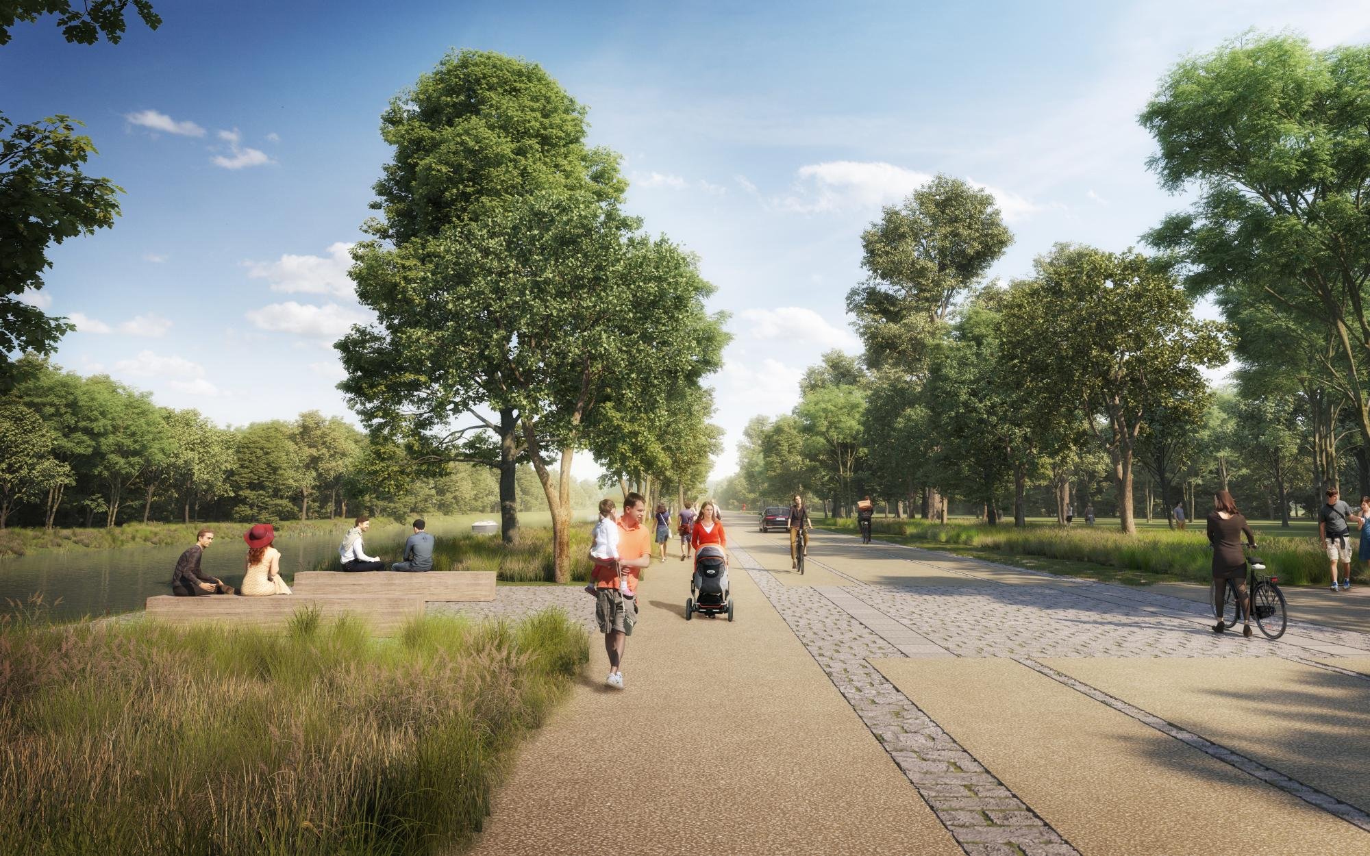 Ze současné technické komunikace se v budoucnu stane široká promenáda, zpomalí se doprava a vznikne tak dostatek prostoru pro pěší i cyklisty. Počítá se i s novými přístupovými cestami k vodě kvůli plánované nové vodní lince a s hřištěm.