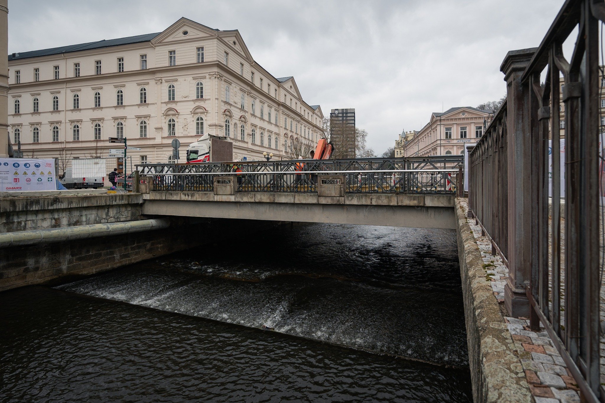 Původní most kompletně celý zmizel a na jeho místě vyrostla provizorní lávka. Ta slouží nejen k překládce stavebního materiálu, ale také jako dočasná trasa pro plynovod a vodovod. Most se nachází v historické památkové zóně a poskytuje přímý výhled na hotel Thermal i Mlýnskou kolonádu, takže jeho stav měl dopad nejen na dopravu, ale i na vzhled lázeňského centra.