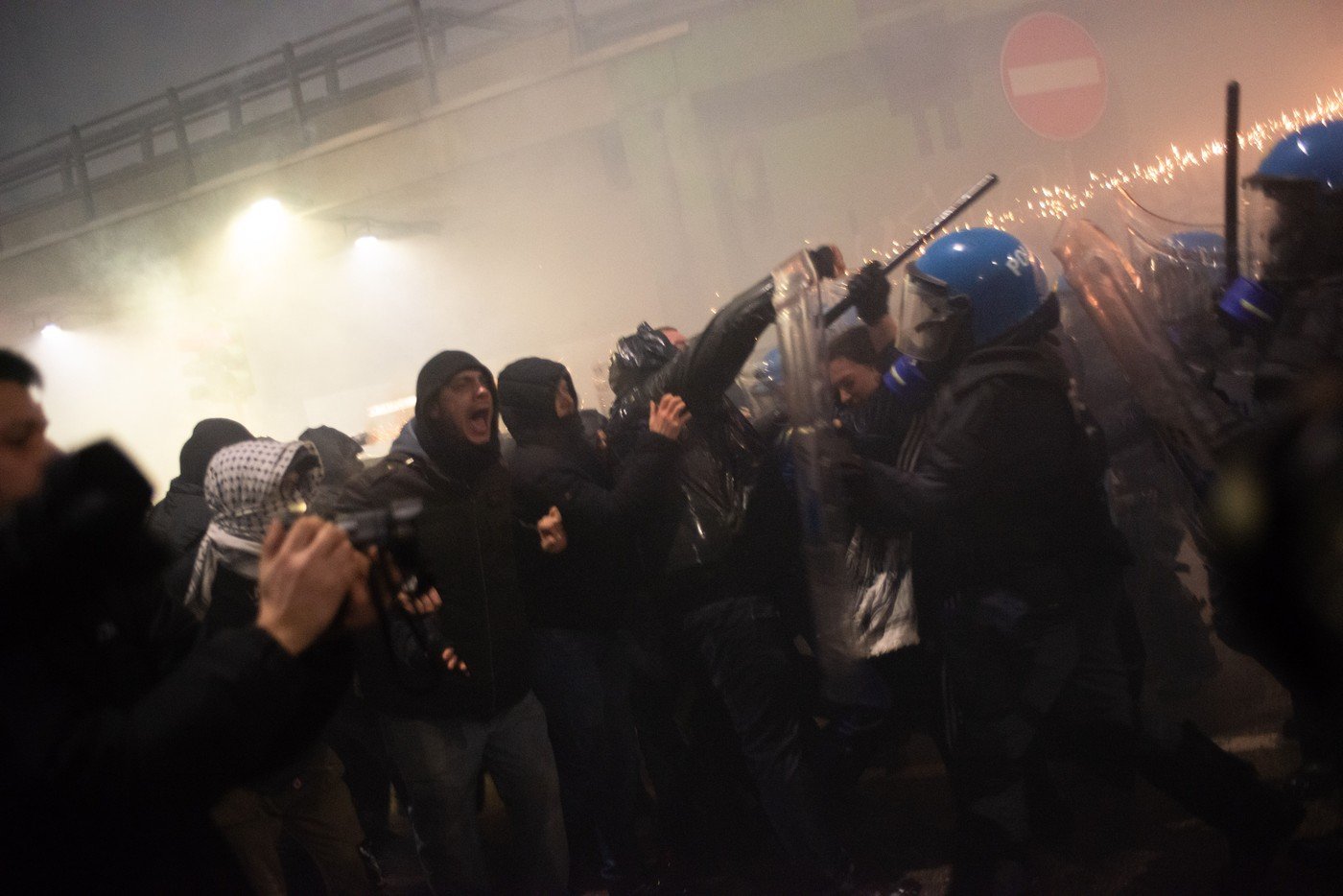 🇮🇹 ALERTE l Des scènes de guerre à proximité des sites olympiques à Milan, des groupes antifascistes s'en prenant aux forces de l'ordre.