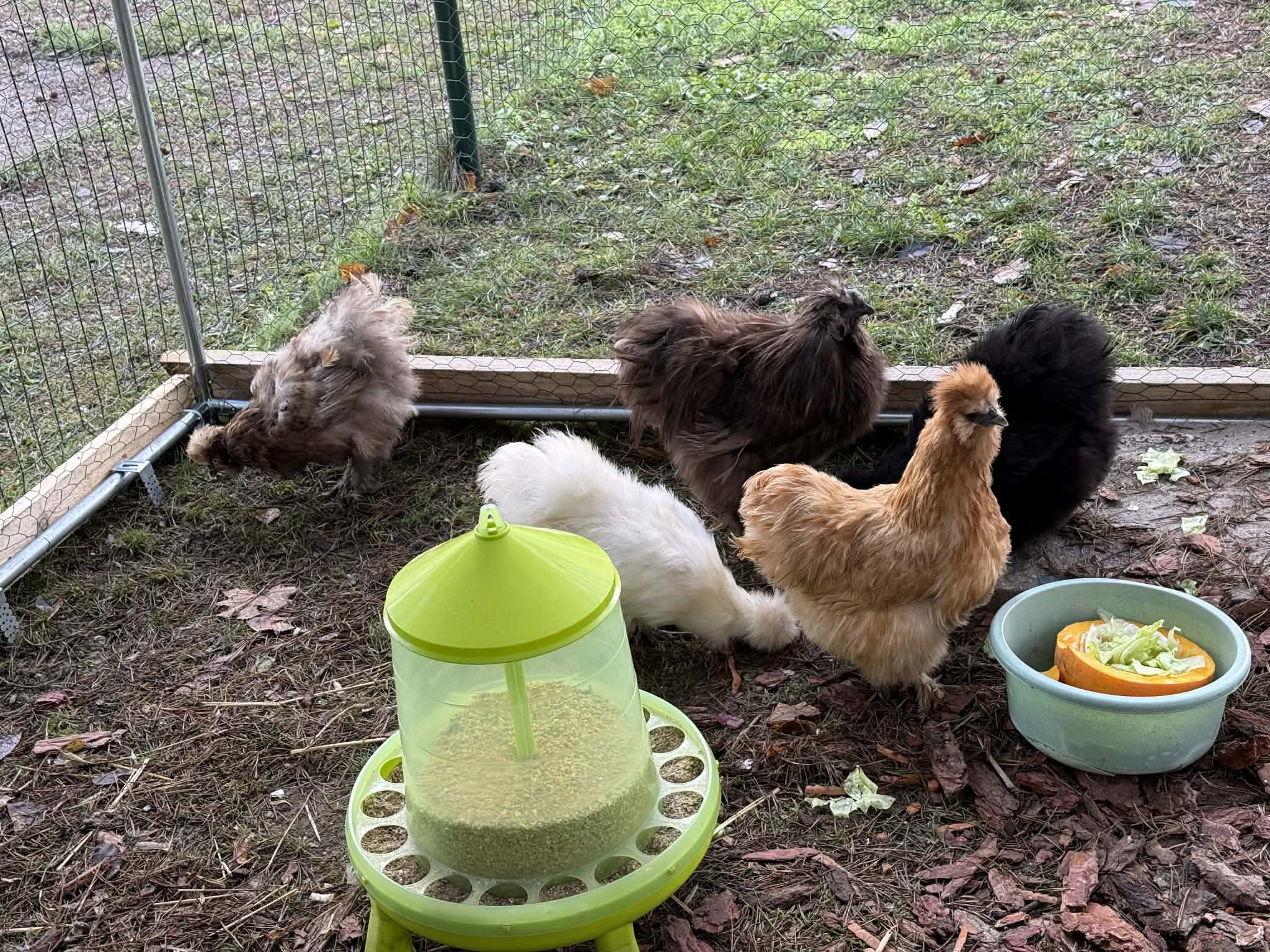 Jde o plemeno hedvábniček, které je pro tento účel ideální, protože nelétá, nehrabe jako ostatní plemena slepic, má klidnou povahu a nechá se snadno ochočit.