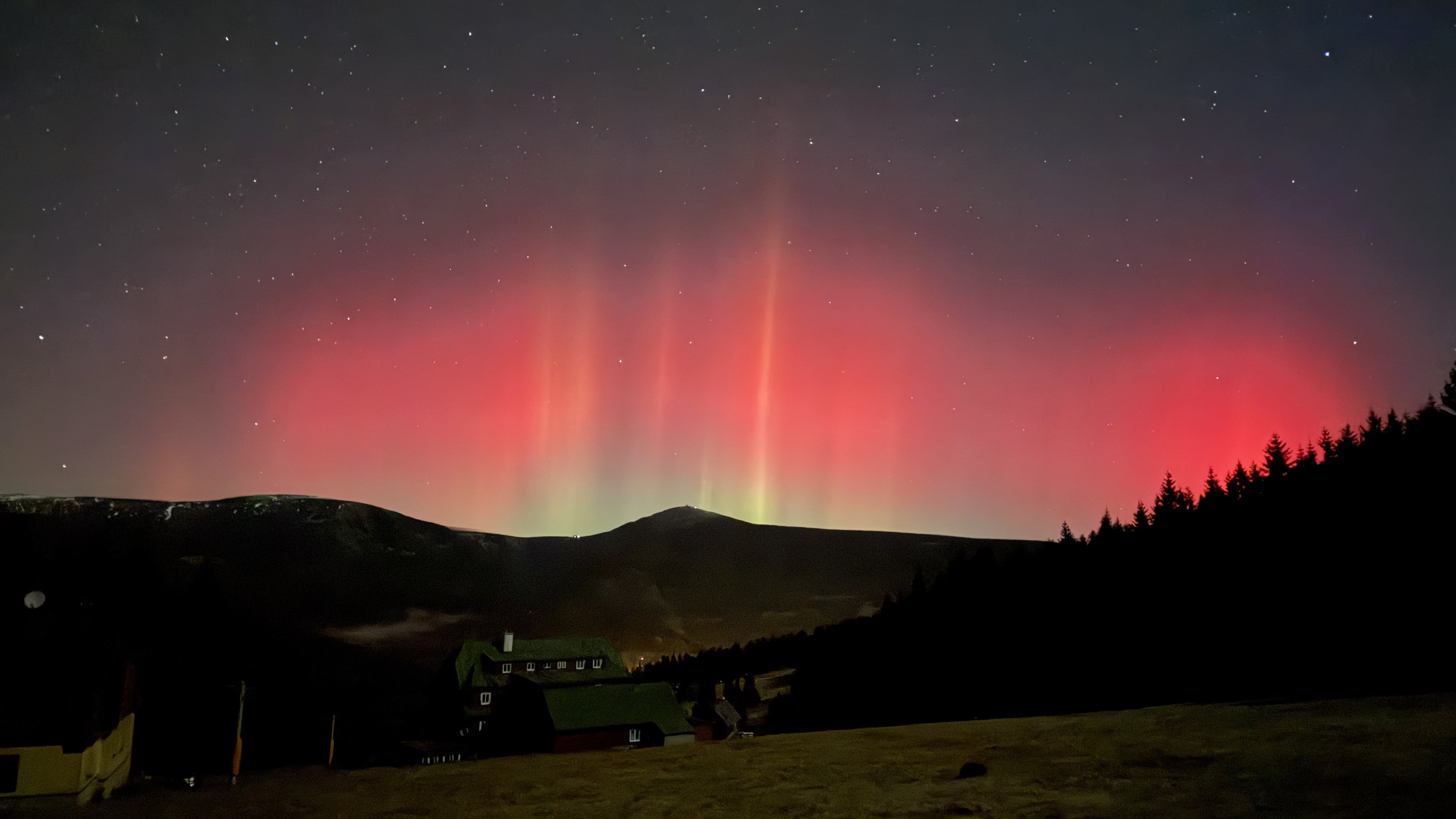 Podívaná v Krkonoších, oblohu rozsvítila polární záře