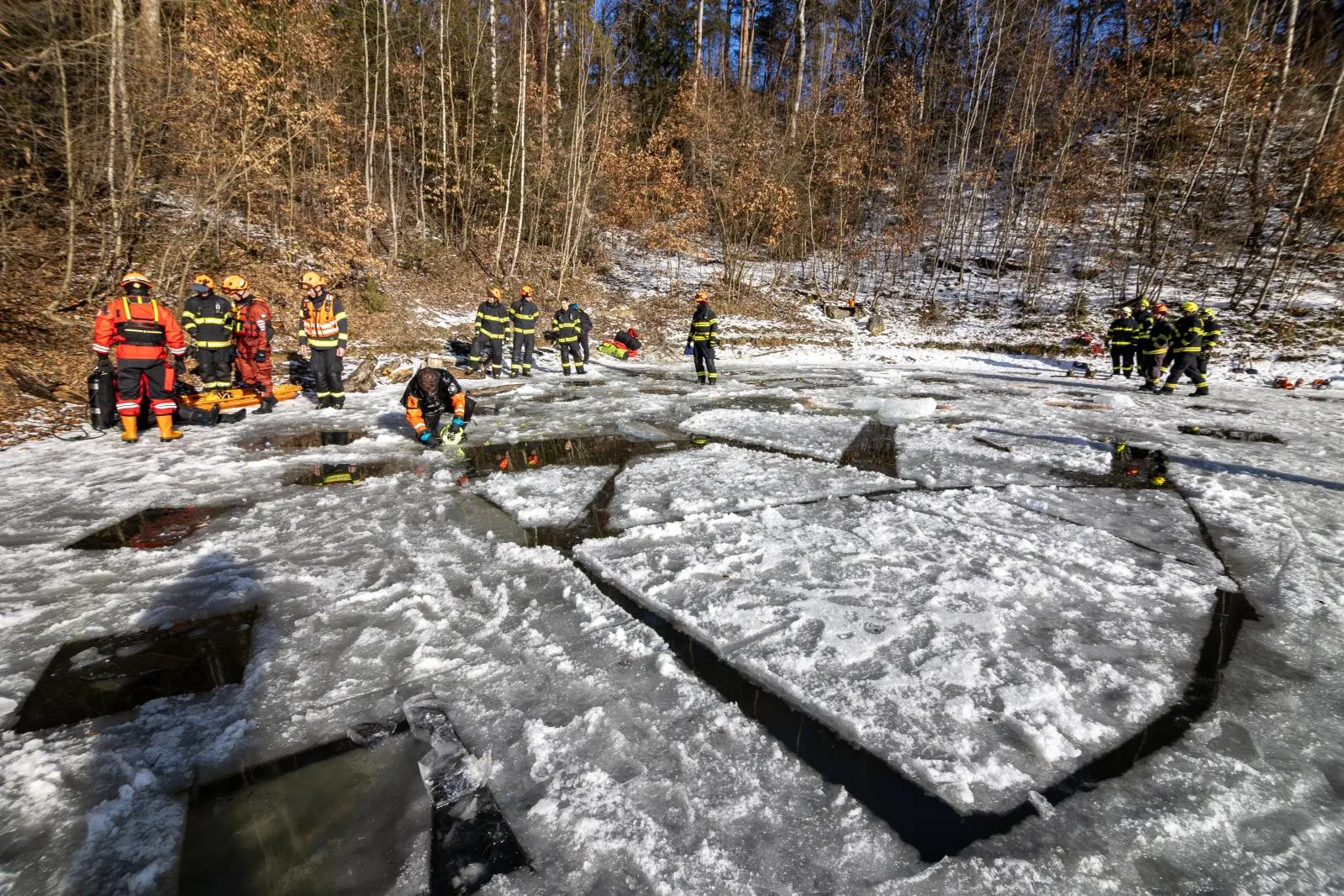 Policie později zveřejnila záběry ze zásahu. Je na nich vidět náročná práce potápěčů v ledové vodě a podmínky, ve kterých museli operovat.