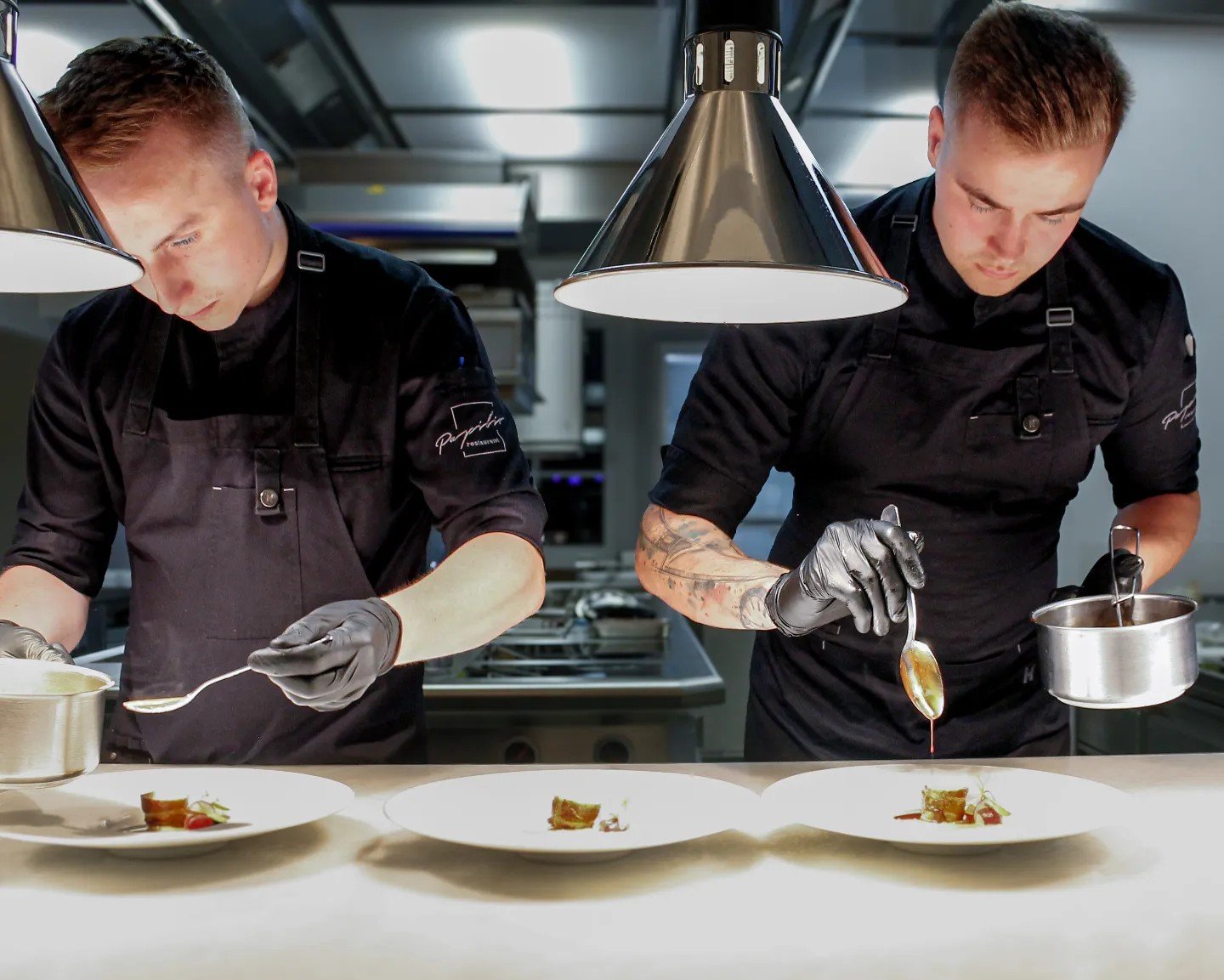 Za úspěchem stojí tým šéfkuchaře Jana Knedly, který staví na moderní gastronomii, precizním zpracování a důrazu na sezónní suroviny. Restaurace sídlí v areálu bývalých zámeckých stájí a nabízí degustační menu zaměřené na detail a gastronomický zážitek.