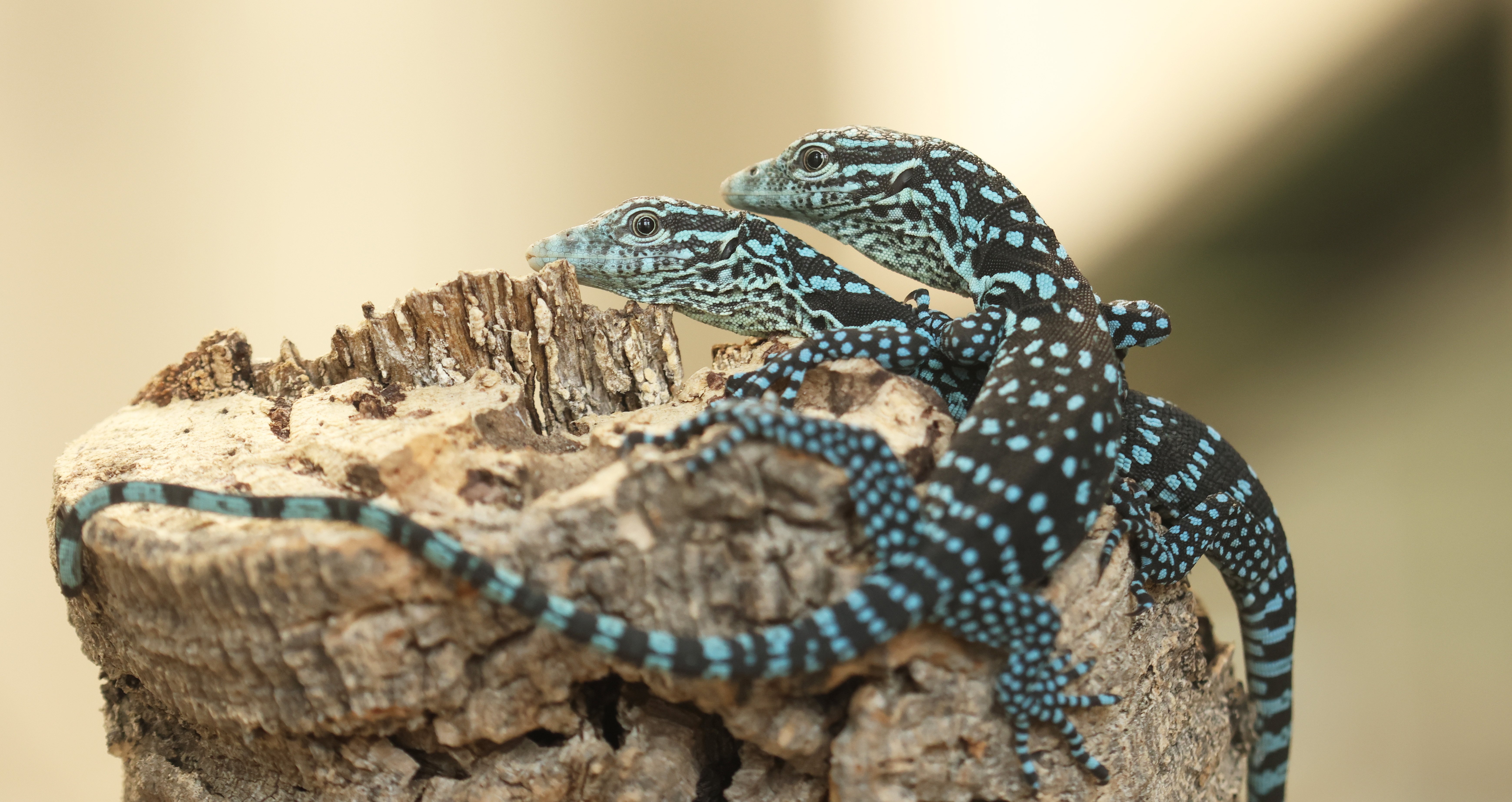 První pár získala zoo v roce 2004 jako zabavená pašovaná zvířata. O dva roky později se podařilo odchovat mládě, jednalo se o světový prvoodchov v zoo. Do roku 2022 zoo odchovala 53 varanů.V současnosti přibyla další tři mláďata. Snůška tvořila tři vejce, byla v inkubátoru při 29,5 stupních a po 162 dnech se na konci října vylíhl samec vážící 11 gramů. Velké překvapení následovalo po 169 dnech, kdy z druhého vejce vykoukly postupně dvě hlavičky a vylezla dvě zdravá mláďata, každé o hmotnosti šest gramů. Jednovaječná dvojčata jsou u plazů obrovskou raritou. Mláďata jsou zatím v chovatelském zázemí a už jedí malé cvrčky. Modře zbarvený stromový druh je endemitem ostrova Batanta v Indonésii. Jde o predátora o délce až 110 centimetrů, kde až polovina délky připadá na chápavý ocas. Jeho potravou je velký hmyz a malí obratlovci, jako ptáčata, žáby či malí savci. V lidské péči se dožívají samice kolem deseti, samci až 15 let.