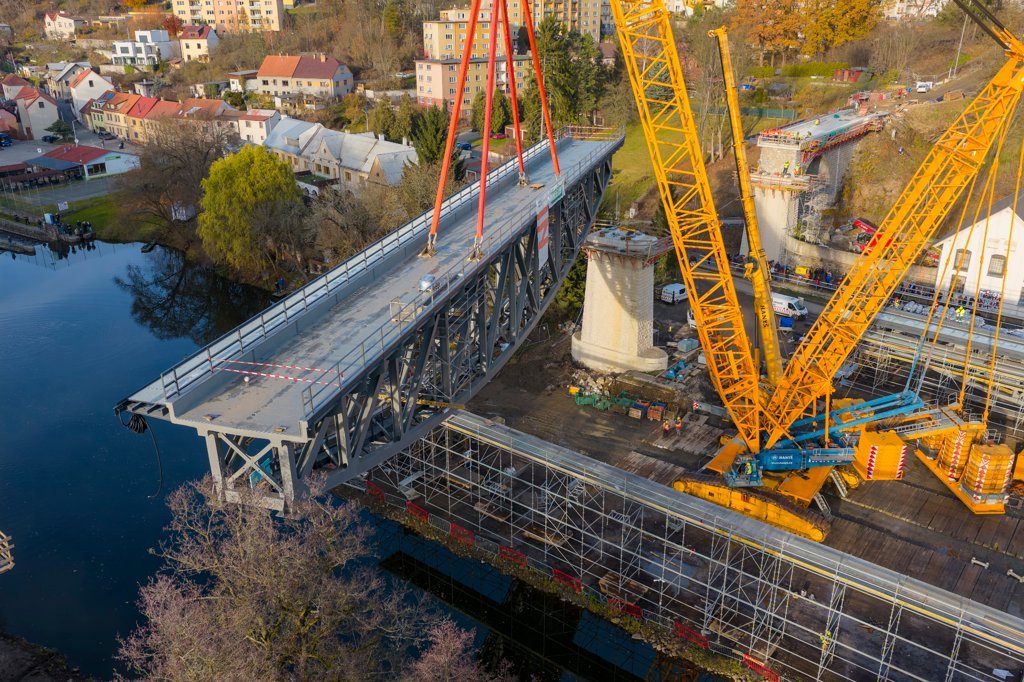 Rekonstrukce historického mostu přes Lužnici na bechyňské trati, která začala v únoru, míří do závěrečné fáze. Stavbaři v uplynulých dnech osadili novou dvoudílnou ocelovou konstrukci, jež je přesnou kopií původního řešení z roku 1905 navrženého Františkem Křižíkem. Správa železnic původně zvažovala renovaci původních dílů, nakonec však od plánu ustoupila kvůli jejich omezené životnosti.