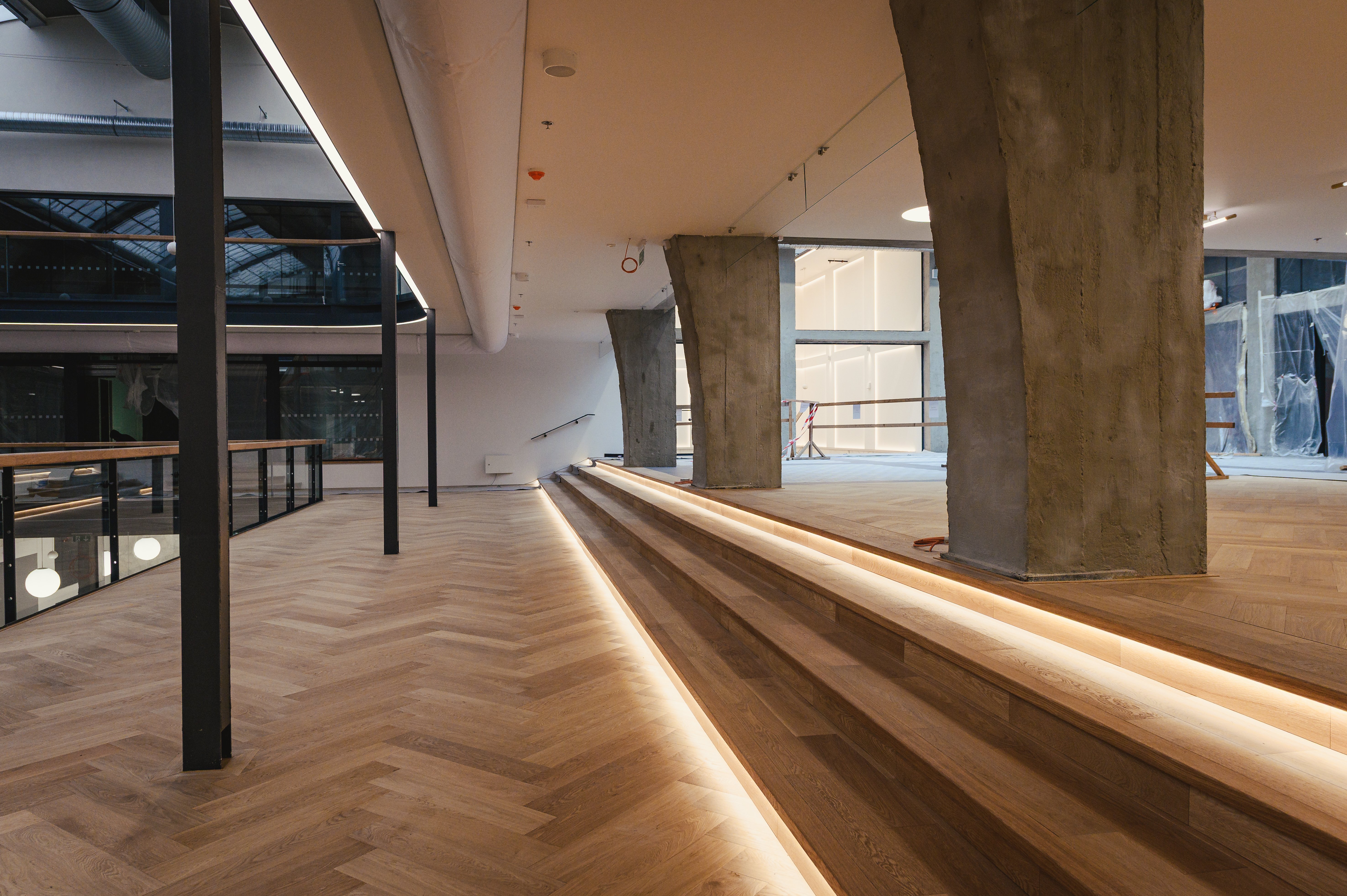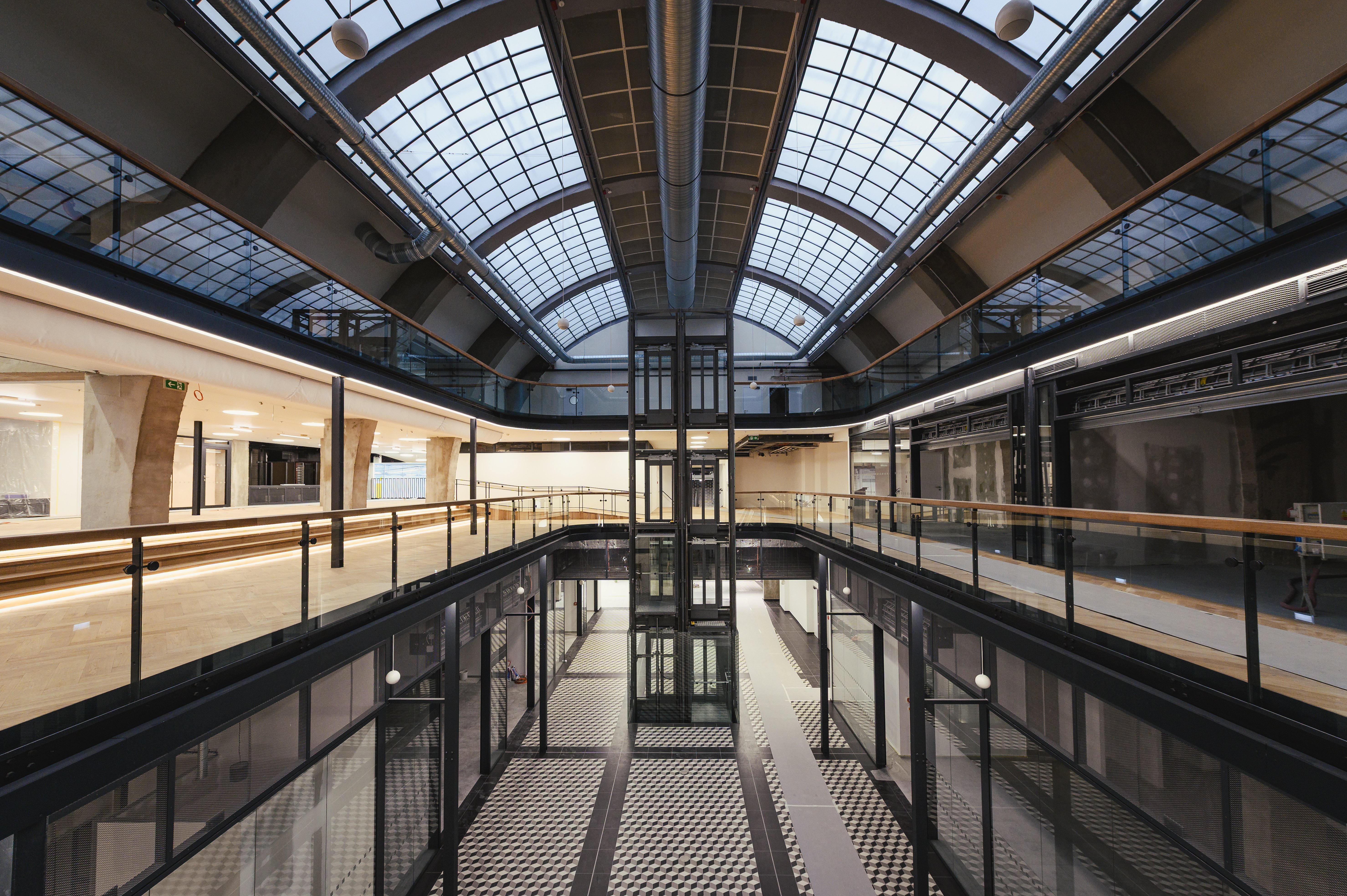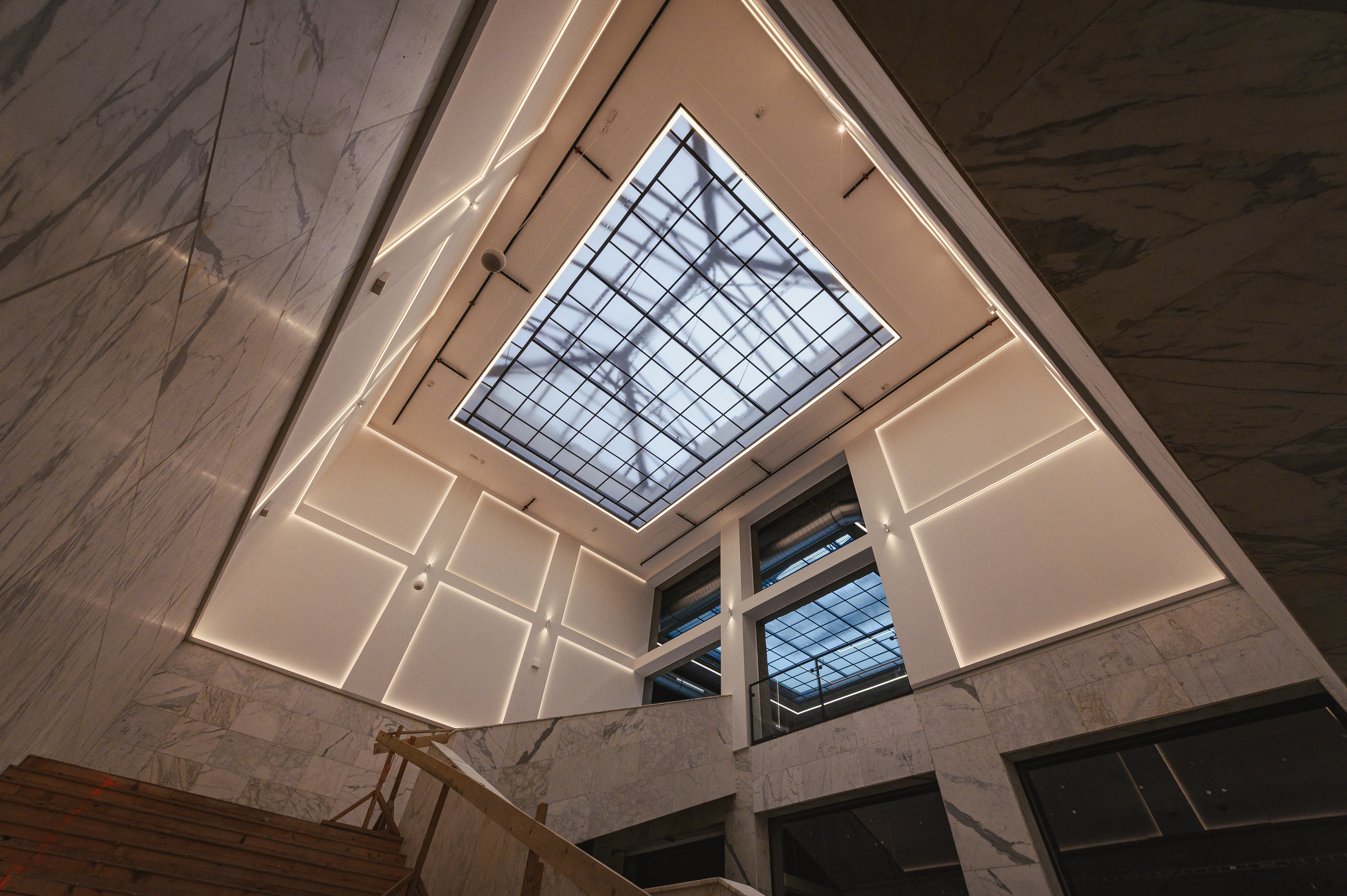 Pracovalo se s původními materiály – mramorem, geometrickou dlažbou, svítidly – a doplnily je současné prvky. Rekonstrukce vyšla na víc než půl miliardy korun.