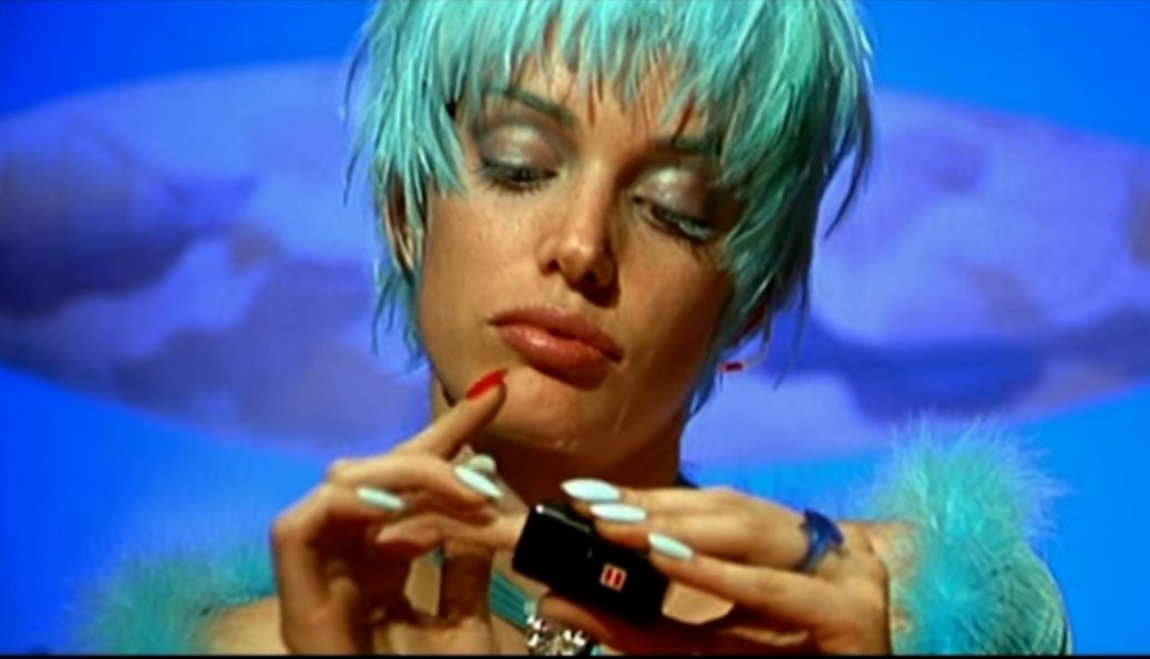Podobná scéna se ještě dřív objevila také ve známém dystopickém sci-fi snímku Total Recall z roku 1990. I tam asistentka mění barvu nehtů, tentokrát dotykem pera.