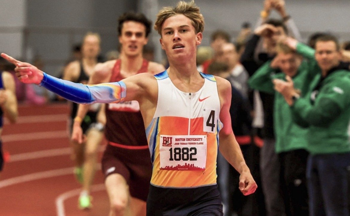 16-year-old 🇳🇿 Sam Ruthe runs a 3:48.88 mile indoors at Boston University.