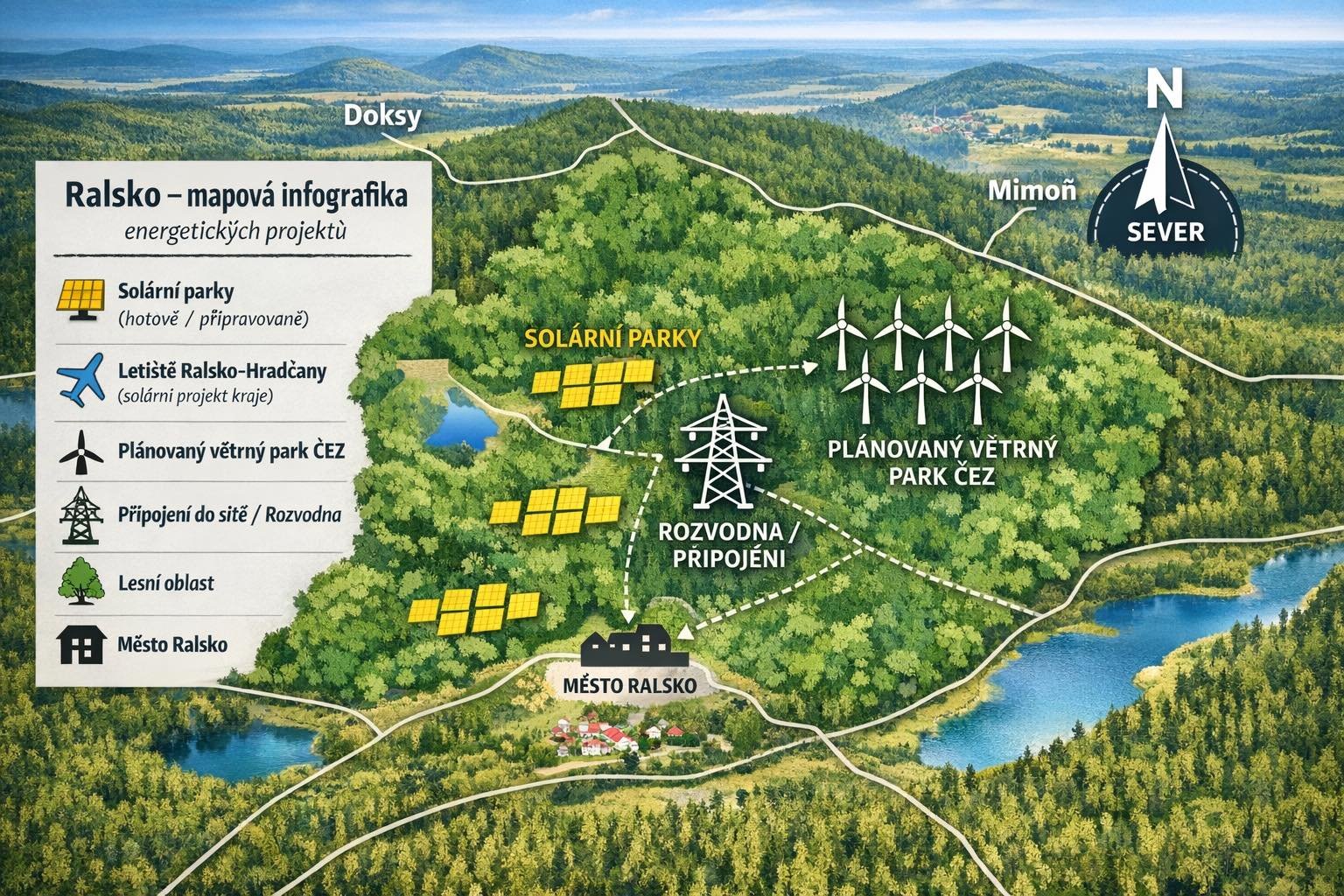 Odměnu Ralsko dostane za změnu územního plánu, získat má zákonný poplatek z každé vyrobené megawatthodiny i peníze podle objemu produkce budoucího větrného parku. Podpory se má dočkat i z Nadace ČEZ.