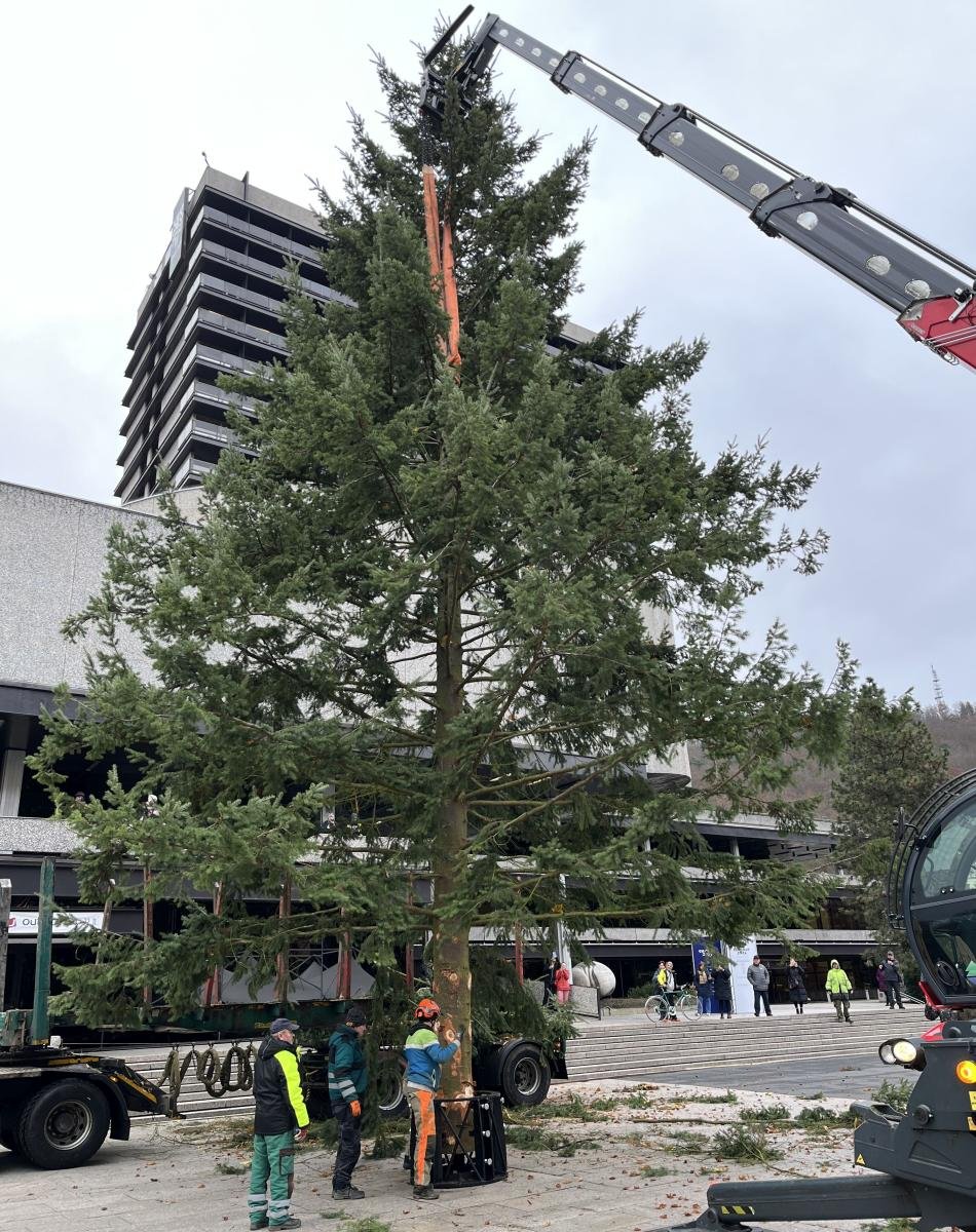 Městští lesáci už intenzivně hledají adekvátní náhradu a vybírají nový jehličnan, který svou kvalitou a parametry vyhoví požadavkům na reprezentativní vzhled a roli vánočního stromu města. Pokácet a ozdobit ho chtějí tento týden, aby se mohl rozsvítit v neděli.