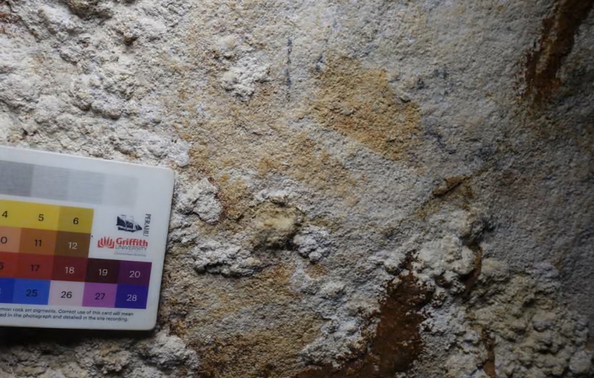 Vybledlý otisk lidské dlaně, který odborníci našli v navštěvované jeskyni Liang Metanduno mezi už dřív nalezenými mladšími malbami, je podle odhadů starý 67 800 let, což z něho dělá vůbec nejstarší dílo člověka.