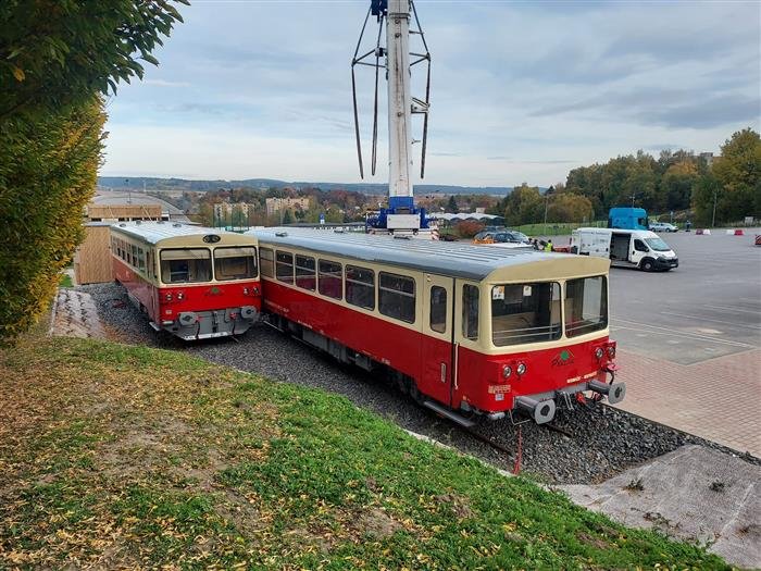 Při náročné logistické operaci se podařilo oba vozy převézt na nové působiště a umístit na vybudované koleje.