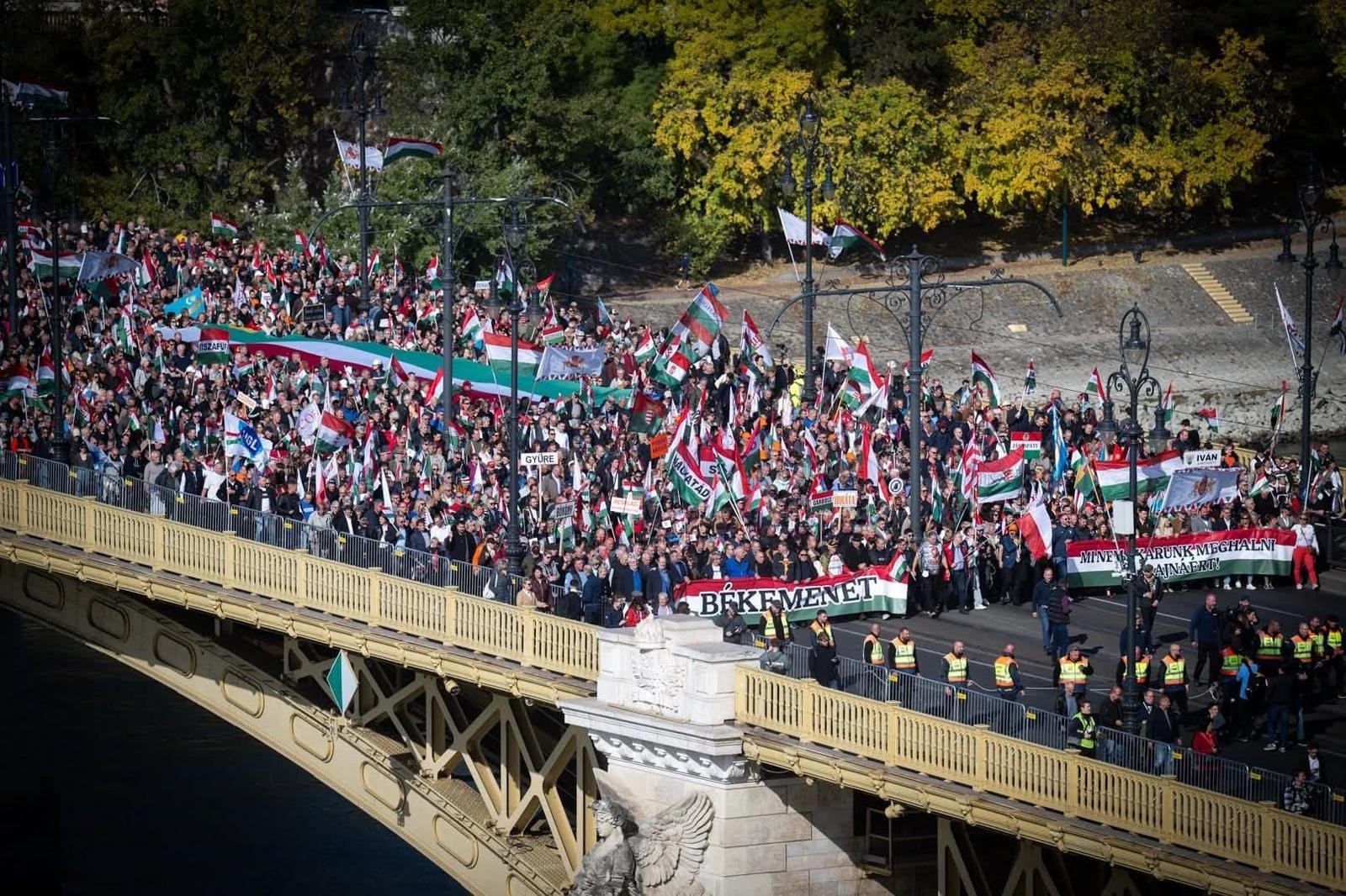 Šest měsíců před parlamentními volbami, které slibují největší politické drama za dlouhou řadu let, se dnes maďarským hlavním městem Budapeští vydal mnohatisícový průvod, kde lidé vyjadřují podporu dlouholetému premiérovi Viktoru Orbánovi. Shromáždění, které organizátoři nazvali Mírový pochod, se koná v den maďarského státního svátku, který je připomínkou neúspěšného protisovětského povstání v roce 1956, jež bylo potlačeno Rudou armádou. Účastníci pochodu křičeli slogany na podporu Orbána, s nímž sdílejí obavy o přímé zatažení jejich země do současné války na Ukrajině.