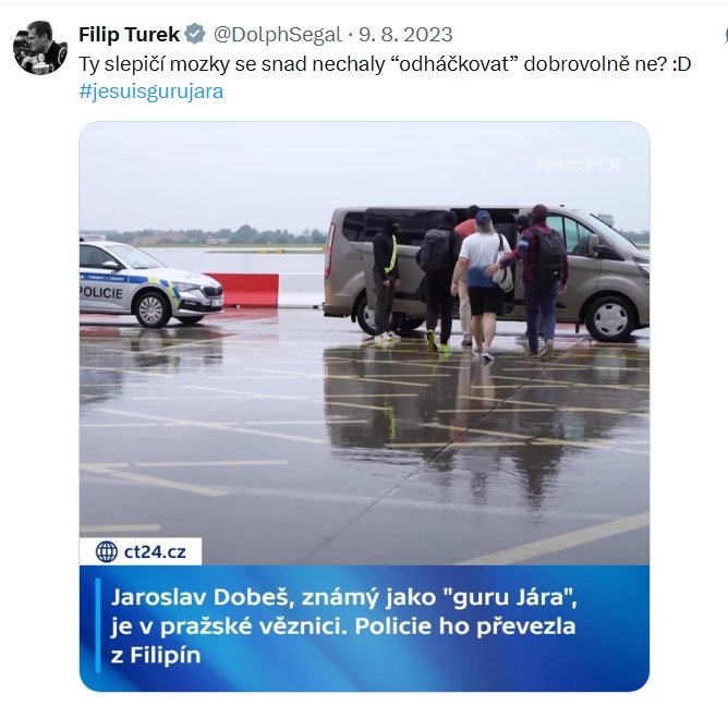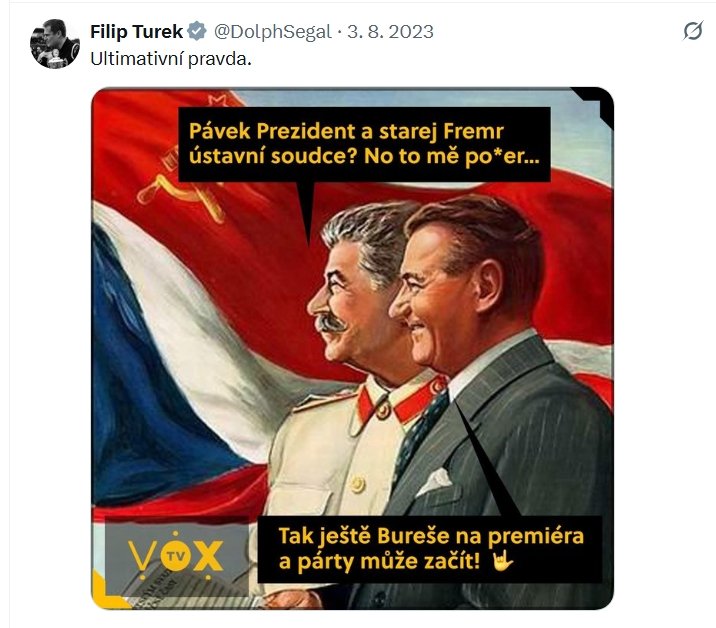 Turek promazává také své příspěvky na síti X. V jednom z nich například označil Andreje Babiše, v jehož vládě chce sedět, za agenta Bureše. V jiném se posmívá znásilněným ženám.